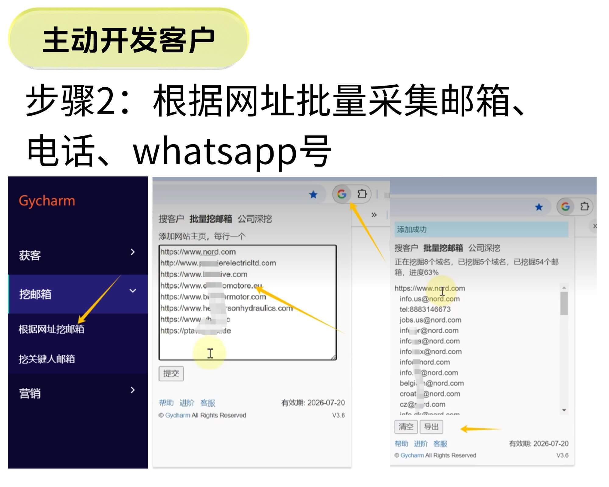 通過第1步,已獲取到大量的潛在客戶網址,接著通過網址批量挖掘郵箱、電話、whatsapp號等聯系方式